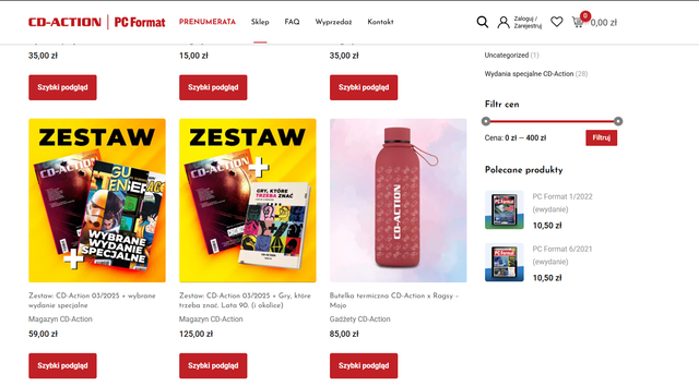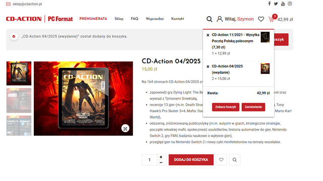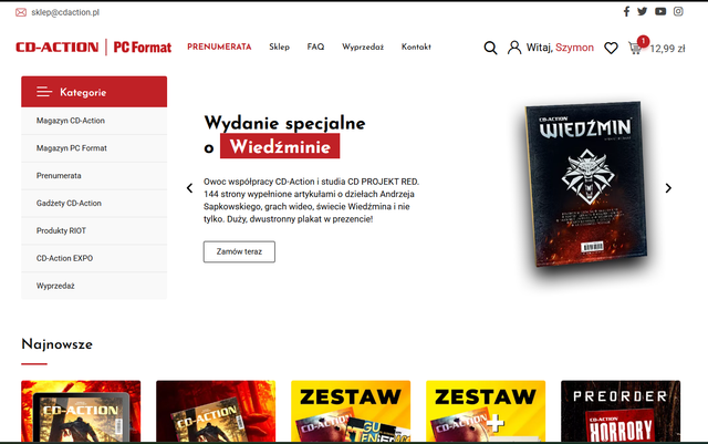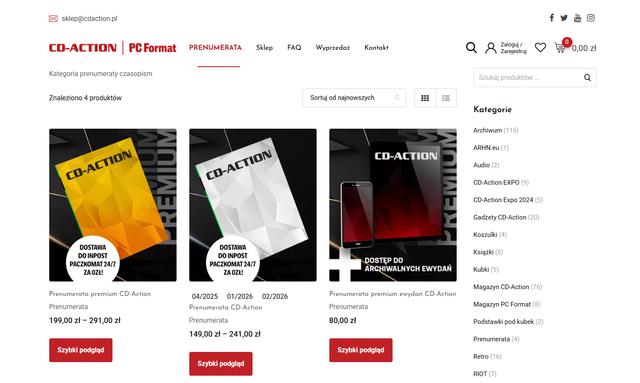 CD Action is a cult Polish computer games magazine that has been building a committed gaming community for years. In response to the changing needs of its readers and the growing popularity of digital distribution, we have developed a modern e-commerce platform for CD Action, enabling the sale of both print and electronic editions of the magazine, as well as subscriptions.